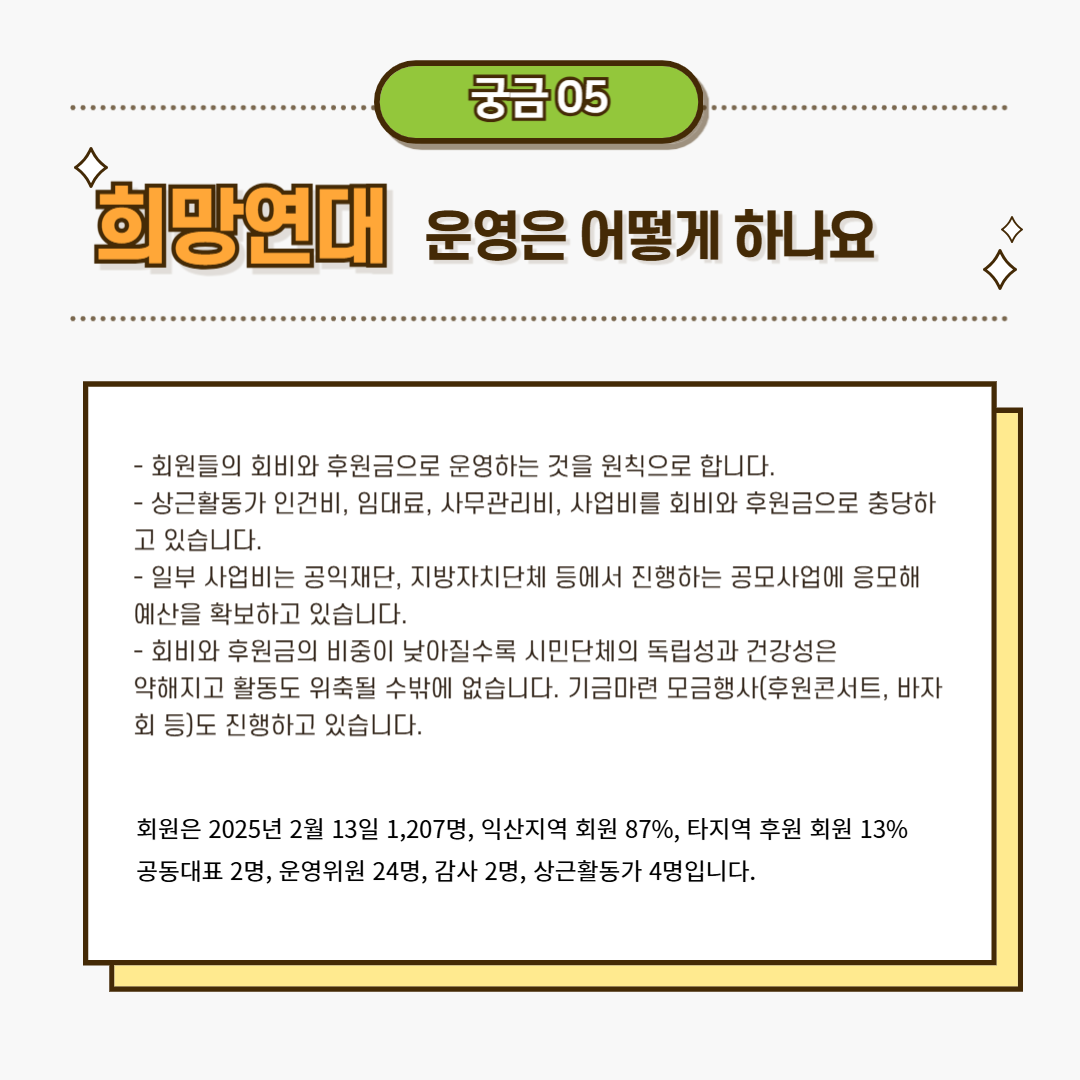 5. 희망연대는 무슨 돈으로 운영 되나요?